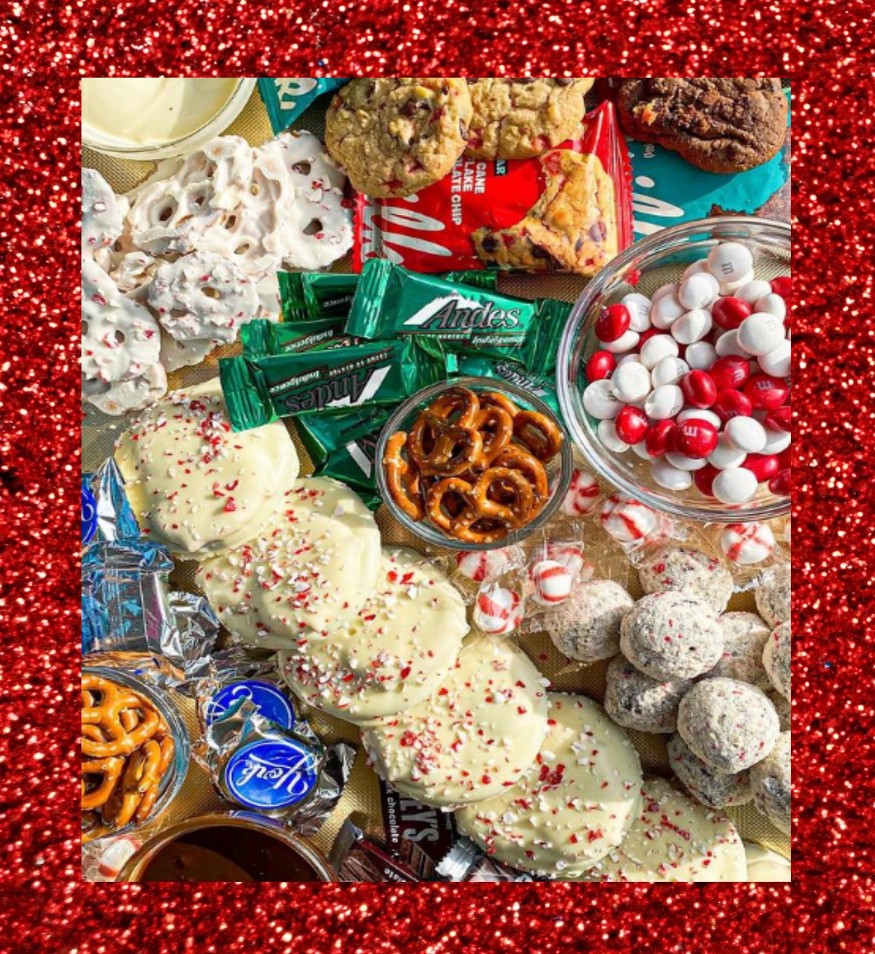 En otros países noté en redes sociales, que las charcuterie candy boards fue otra tendencia… y me llamó la atención que a pesar de ya no ser una tabla de embutidos, siguió conservando el nombre inicial con la palabra de “charcuterie”, la cual tiene su origen en Francia por carne (chair) y cocinado (cuit)… Se cree que ellas vienen desde el siglo 15 y desde entonces se consumían con vino. Ahora intentaron crear estas tablas, pero montando diferentes dulces adecuándolos a la festividad y gustos. Las tablas de dulces navideñas, se buscaron dulces de la época o al menos que tuvieran los colores de blanco, rojo, dorado, verde.