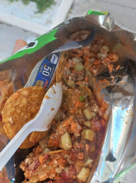 Ejemplificó con los nachos o el pollo a la parmesana. Sin embargo, en México tenemos más comidas con este textura, principalmente los chilaquiles y los nachos o comidas callejeras como tostitos con elotes, con ceviche o con queso derretido del OXXO. Algunos tacos dorados también o las tostadas que son salseadas. Ésta es una textura algo común que incluso tenemos en el cereal con leche